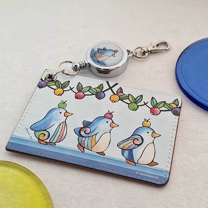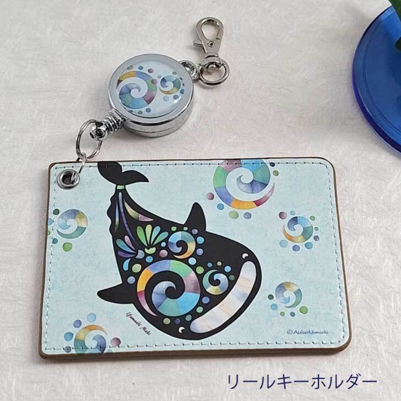 パスケース ペンギン ジンベイザメ リール リール付きキーホルダー ICカード かわいい リンゴ サメ ぺんぎん 「林檎ペンギン」「にんまりジンベイザメ」