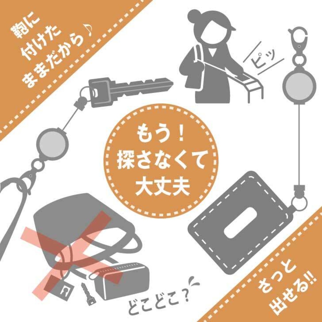 ボールチェーン 又は リール付キーホルダー 付き